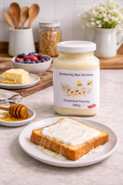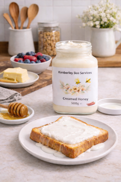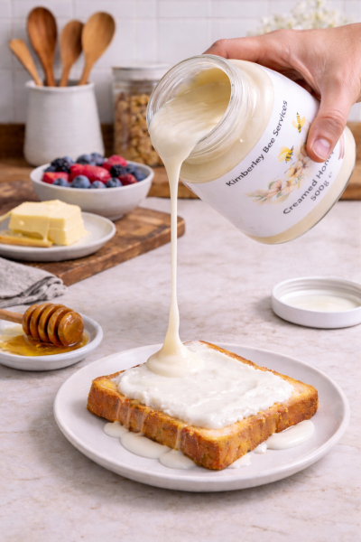 Creamed honey, also known as whipped honey, spun honey, or honey fondant, is 100% pure honey processed to control crystallization, resulting in a smooth, spreadable, velvety texture that won't drip like liquid honey, making it perfect for toast, yogurt, or baking